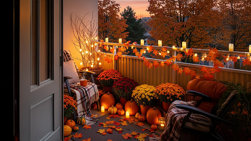 With a battery-powered string of lights, a simple window becomes a cozy eye-catcher that creates an autumnal atmosphere not only from the inside but also from the outside. And with a few light accents, the balcony also becomes an atmospheric retreat for mild autumn evenings.